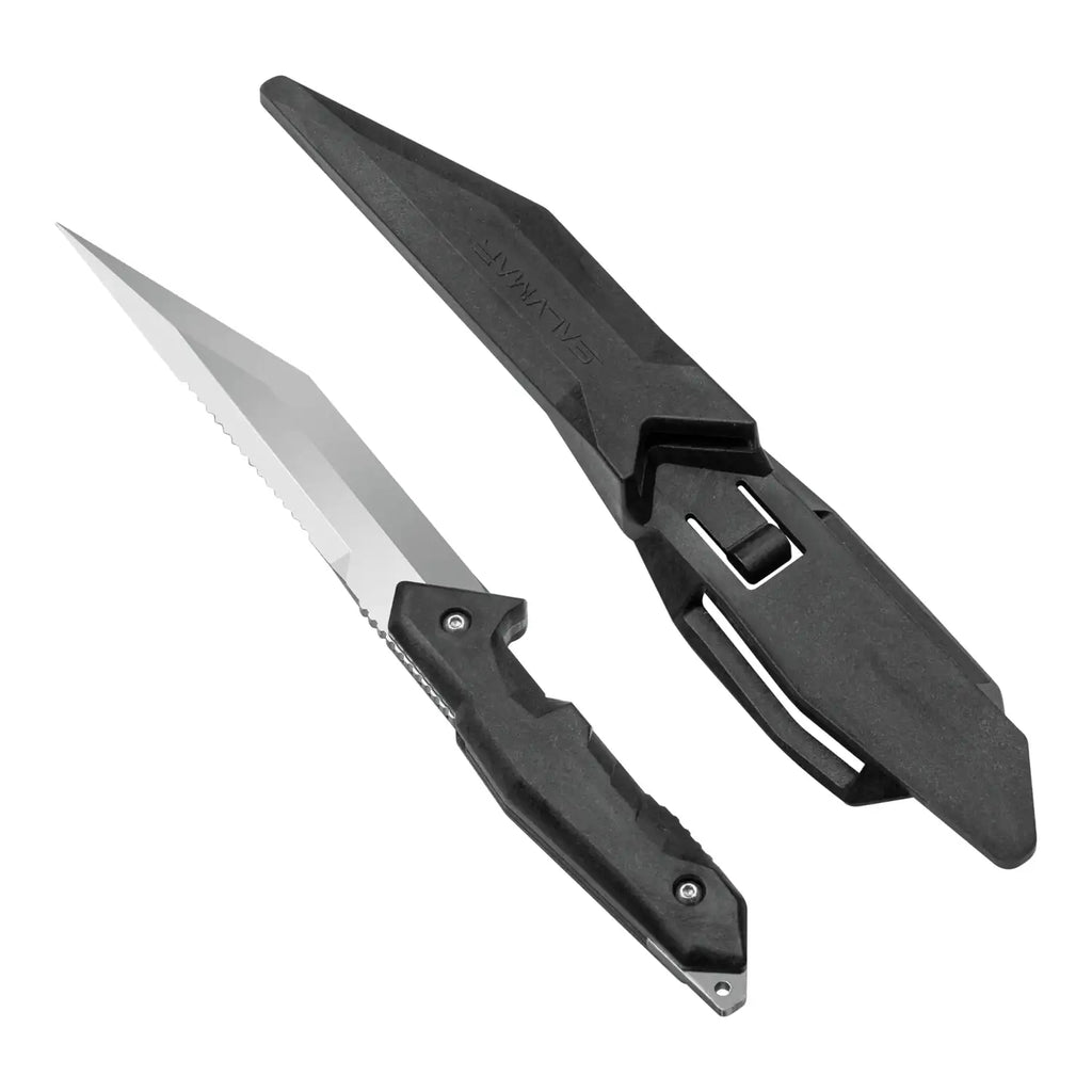 The knife blade features an asymmetrical profile designed specifically for proper filleting of fish, ensuring a precise and effective cut. The scabbard features a double fastening slit to allow stable and secure placement on the calf while diving. Made of 30% fiberglass loaded nylon, the material offers high impact and abrasion resistance, ensuring durability. The serrated profile of the blade is ideal for scale removal. The scabbard has a V-shaped seat that makes it easy to insert and remove the blade quickly and safely during use.